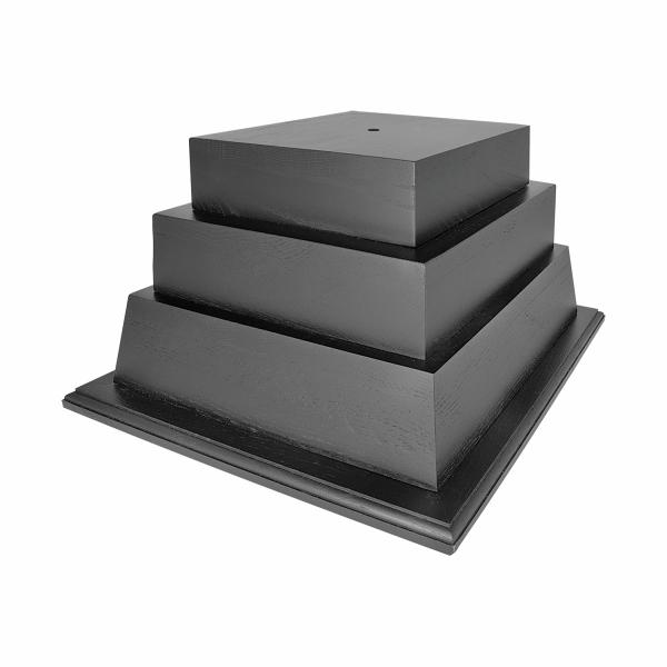 This exquisite piece boasts a black finish base, meticulously crafted to provide a sturdy and sophisticated foundation for your most cherished trophies, vases, or unique statues. The base features many tiers to offer a lifetime of engraving, For an extra touch of elegance and personalization, you have the option to add an engraved plate to any of the sides on any tier, making it a truly one-of-a-kind keepsake.